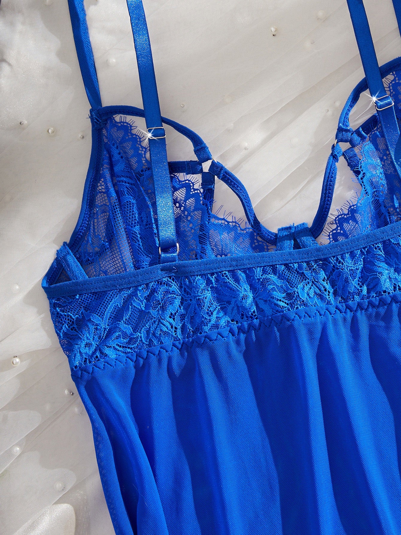 Características: Babydoll con delicado encaje en busto; estilo holgado; ajustable de los tirantes; hilo incluido y soporte de aros en busto