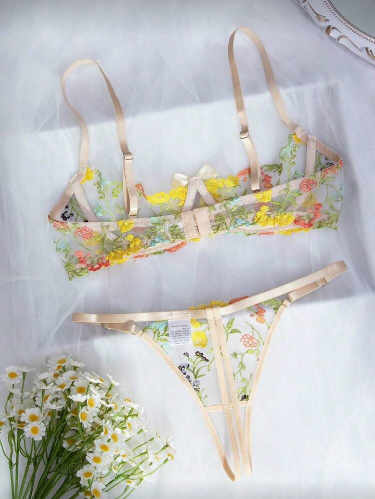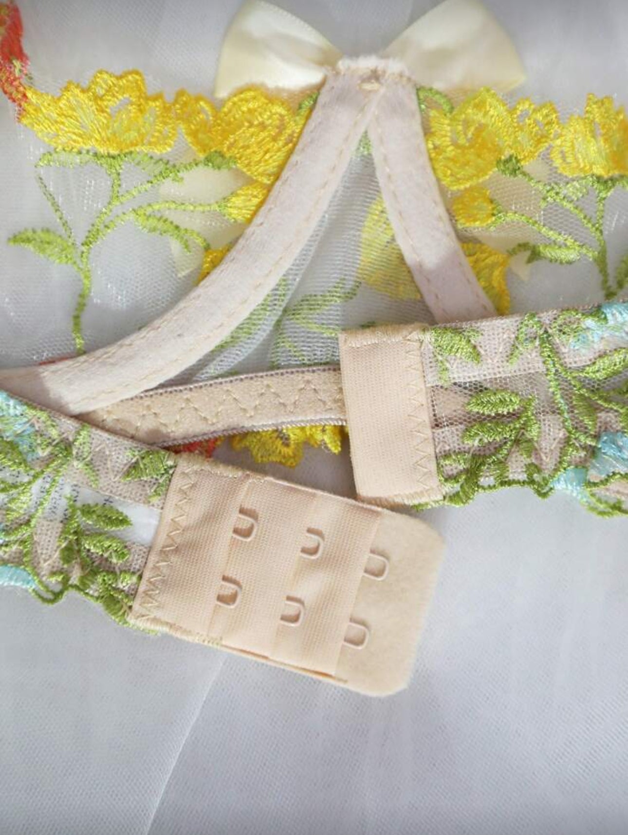 Características: Set con transparencias y aberturas; suavidad de la tela al tacto; tirantes ajustables; estilo tanga y broche ajustable en la parte trasera del brassier; abertura en busto y parte inferior de tanga