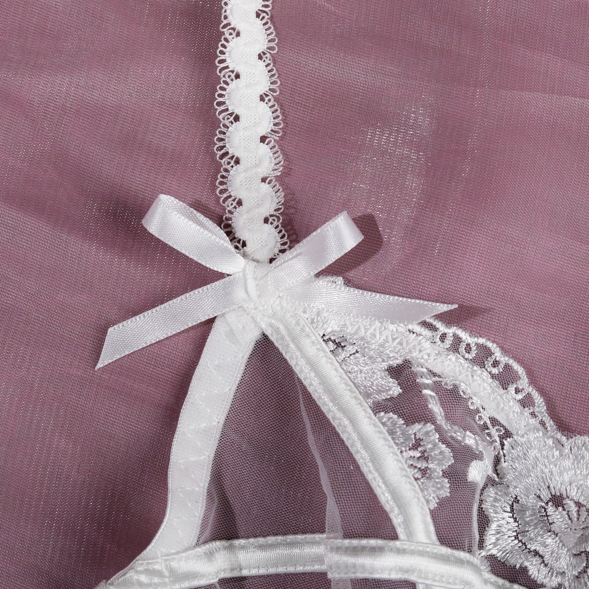 Características: Set con bordado delicado y transparencias; suavidad de la tela al tacto; tirantes ajustables; estilo hilo y broche ajustable en la parte trasera del brassier
