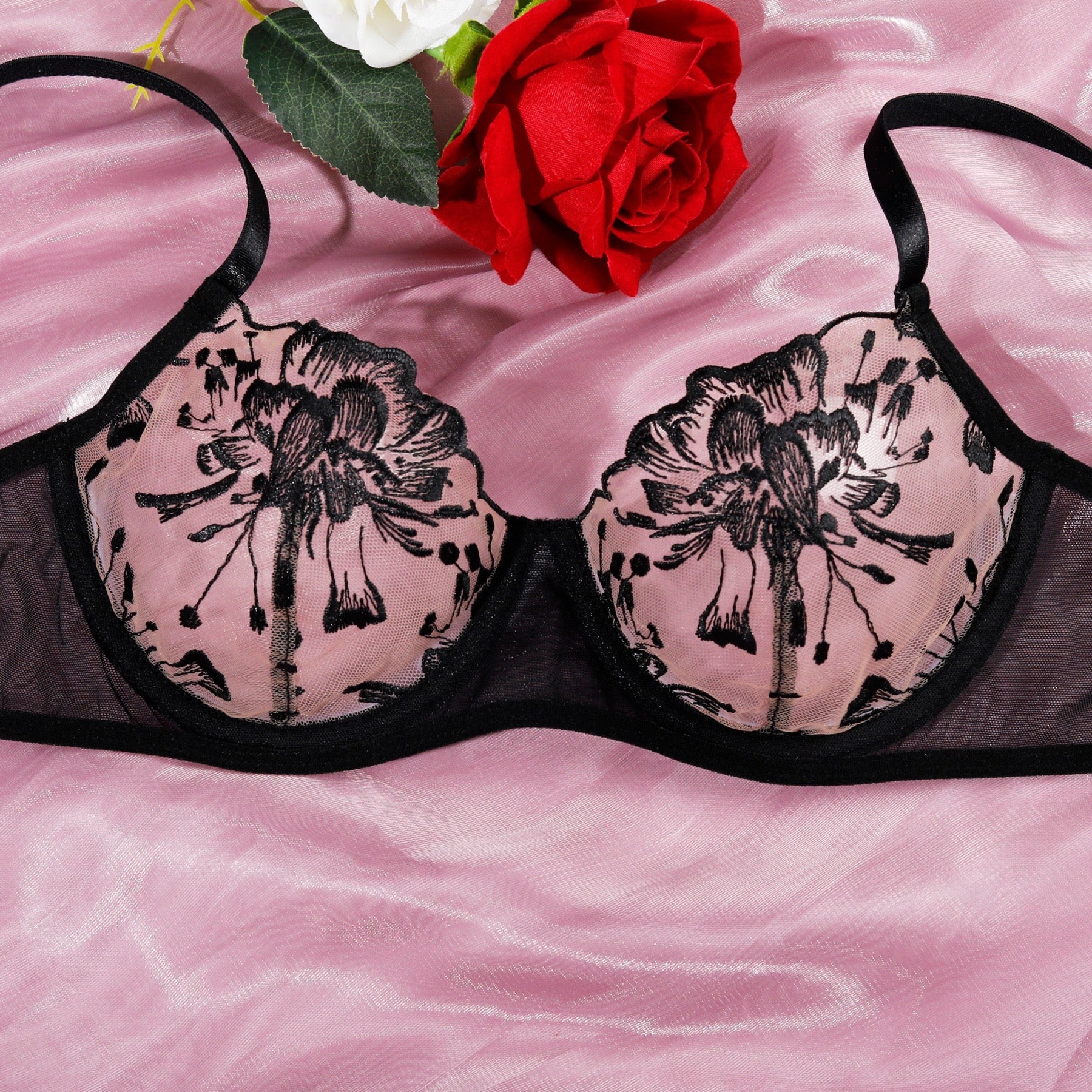 Características: Set con bordado delicado y transparencias; suavidad de la tela al tacto; tirantes ajustables en brassier; estilo tanga tiro medio y broche ajustable en la parte trasera del brassier