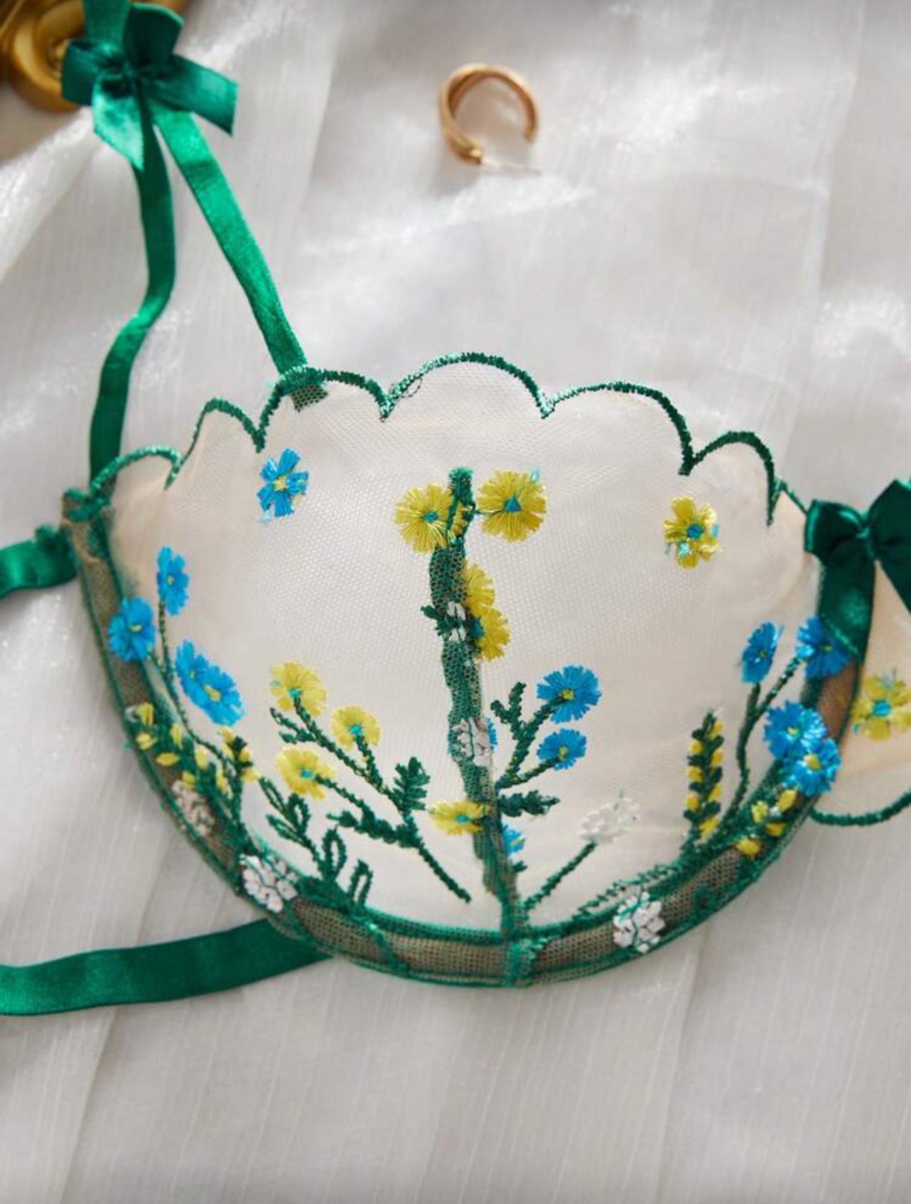 Características: Set con bordado delicado y transparencias; suavidad de la tela al tacto; tirantes ajustables en brassier; tanga ajustable y broche ajustable en la parte trasera del brassier