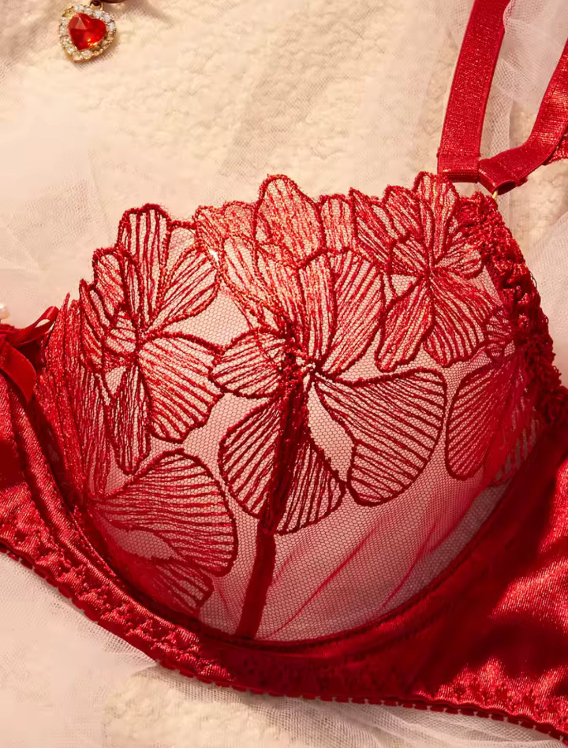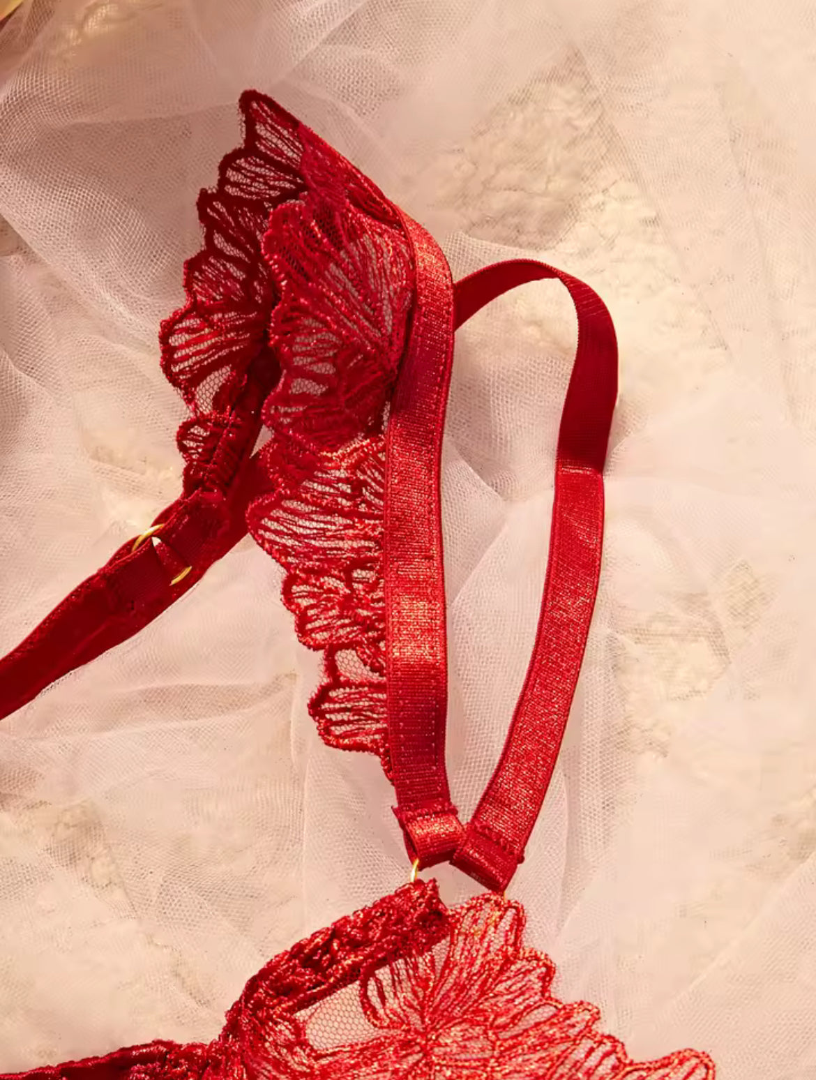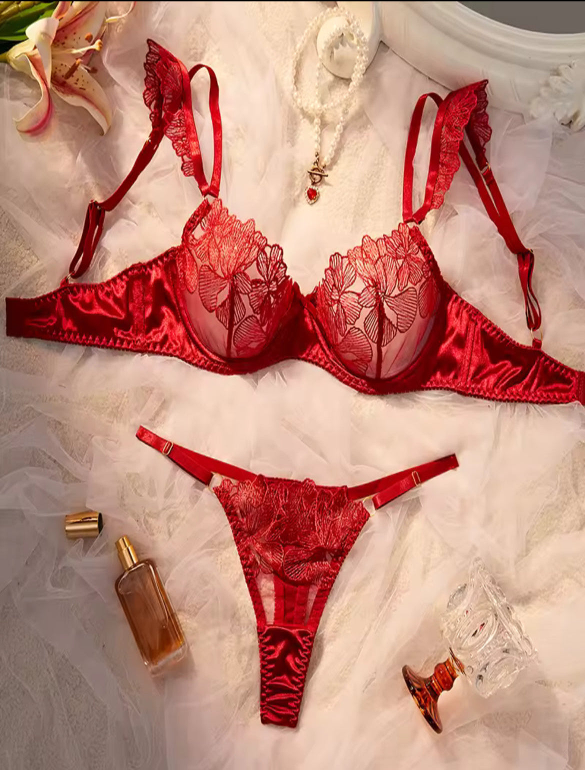 Características: Set con bordado delicado y transparencias; suavidad de la tela al tacto; tirantes ajustables; estilo tanga y broche ajustable en la parte trasera del brassier