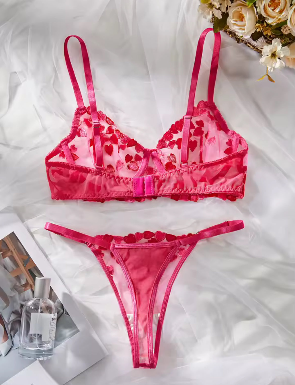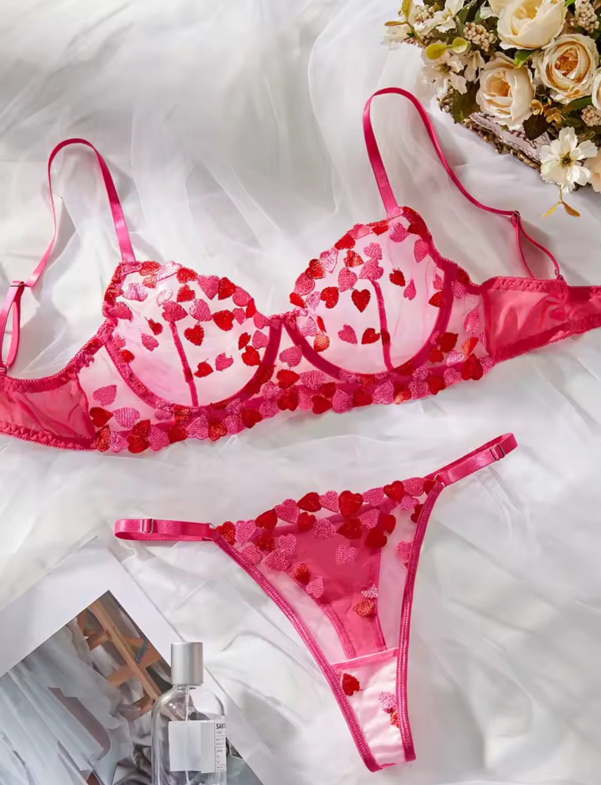 Características: Set con bordado delicado y transparencias; suavidad de la tela al tacto; tirantes ajustables; estilo tanga y broche ajustable en la parte trasera del brassier