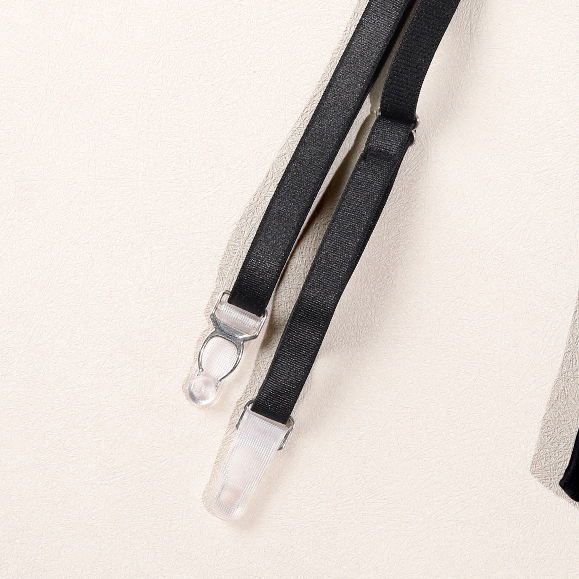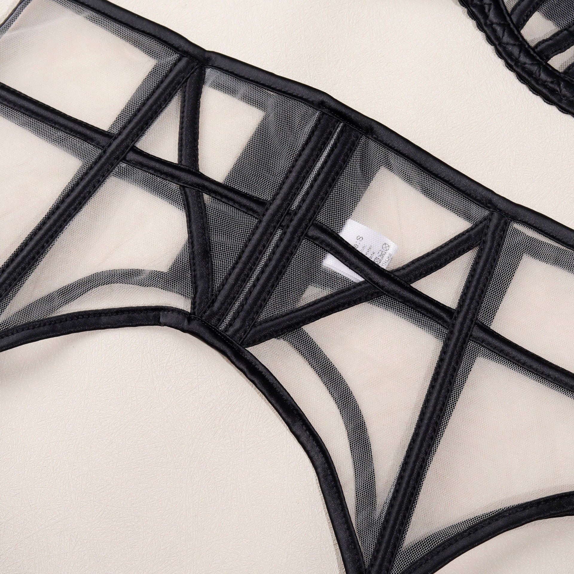 Características: Set con transparencias; con liguero sensual; ligas incluidas; gargantilla incluida y guantes transparentes; liguero ajustable; tanga incluida y ajustable de los tirantes en brassier
